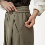 Lounge-ready luxury meets functional design. The double-faced jersey mirrors our Cupro Tee’s softness, while six pockets (four zippered, two patch) are strategically placed for security and ease. The triangular side panel anchors the pleated drape for elevated comfort, engineered for motion.