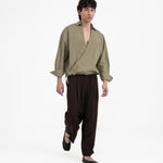 Breaking from tradition, this shirt embraces a kimono-inspired wrap with a modern edge. Made from 100% pure cotton, it sends comfort and softness against the skin, balancing out the crispy structure.