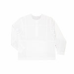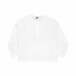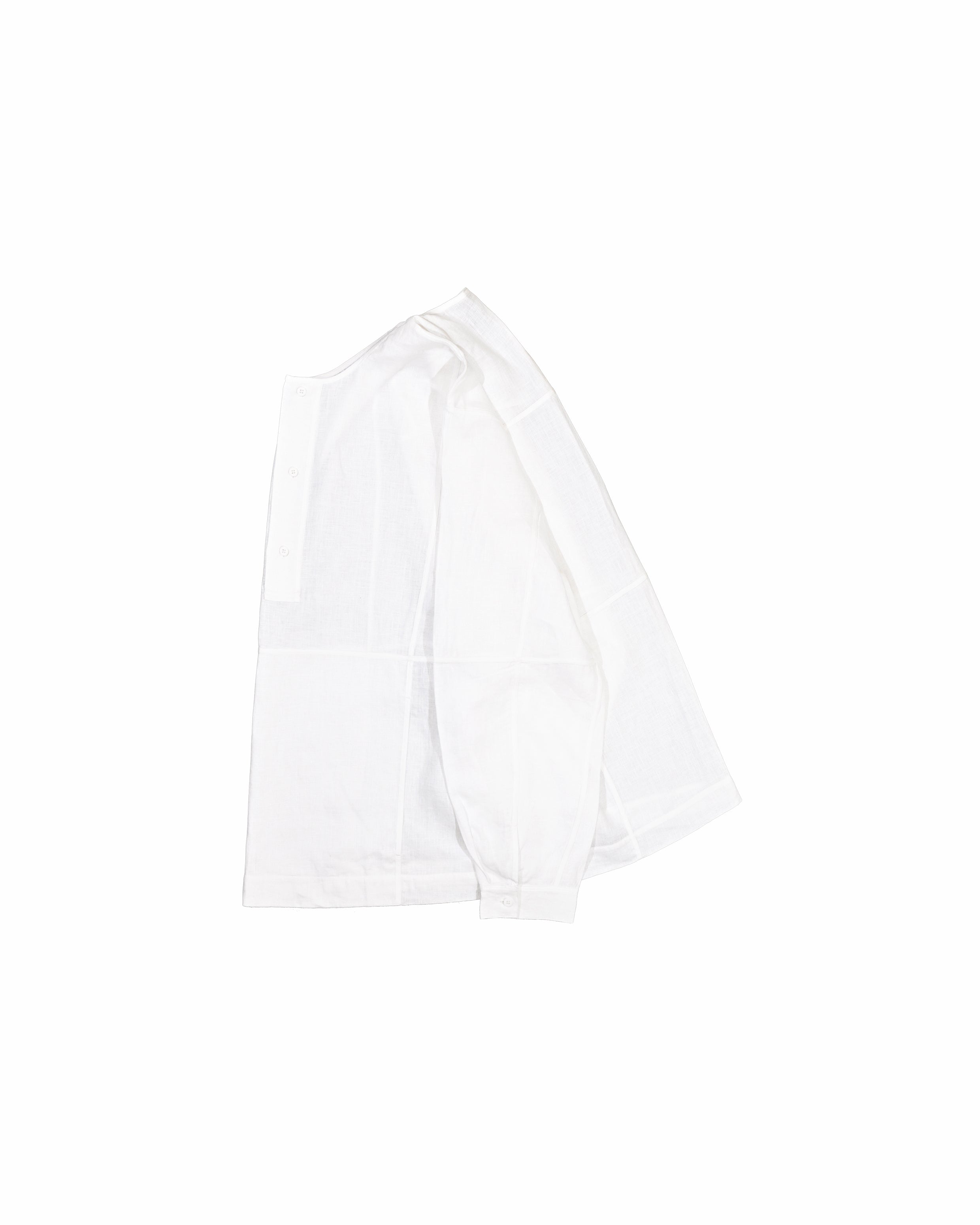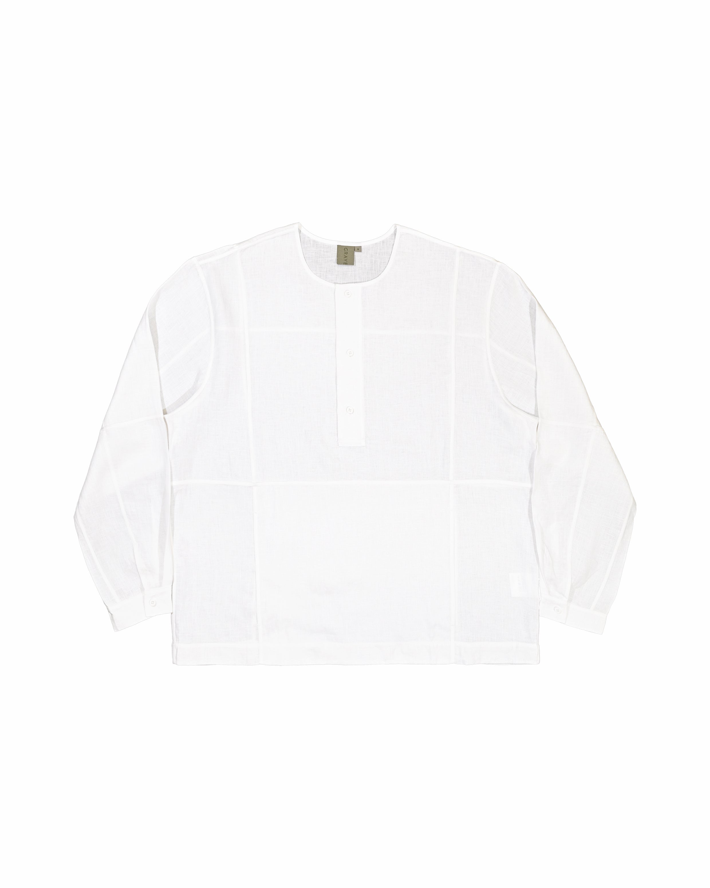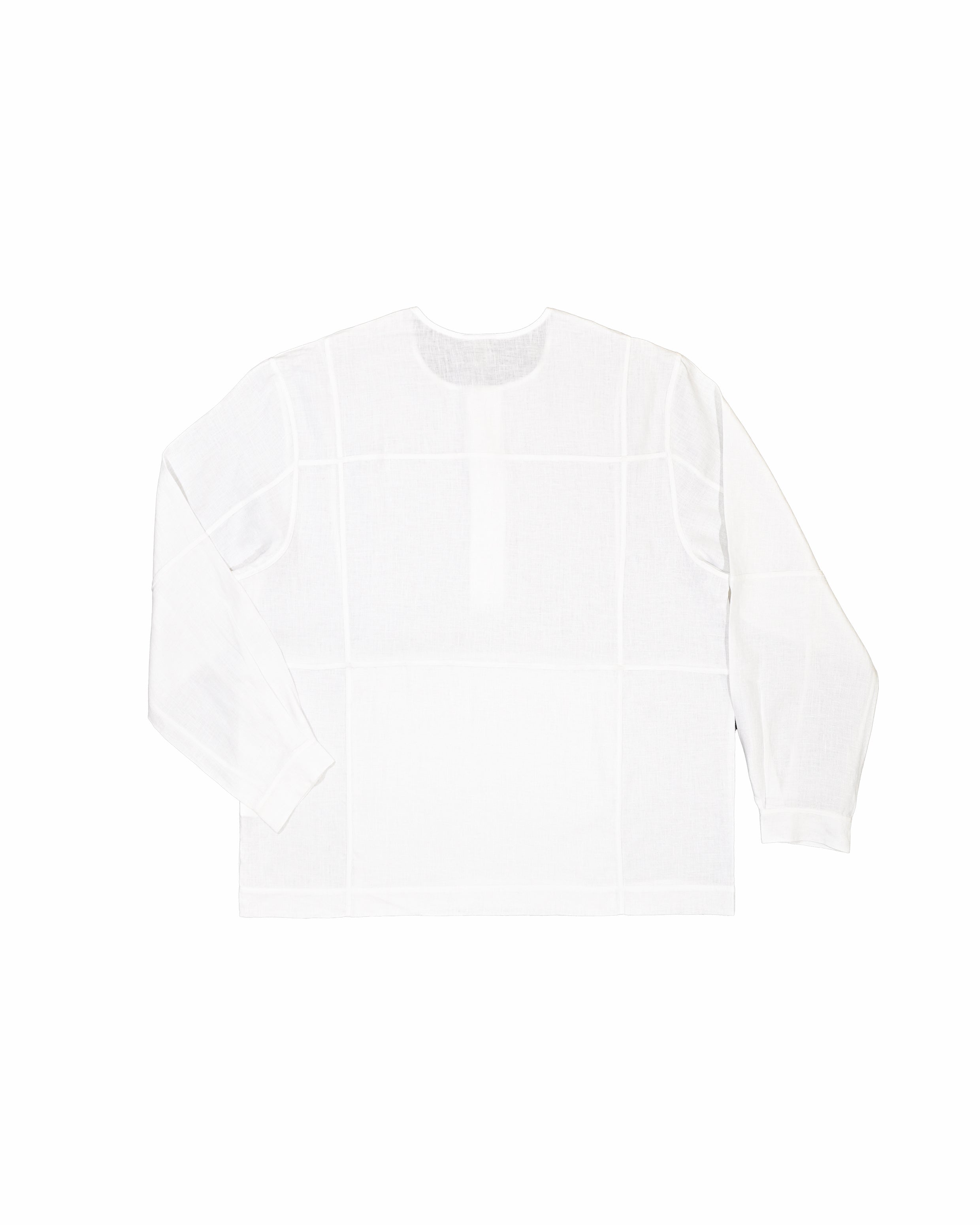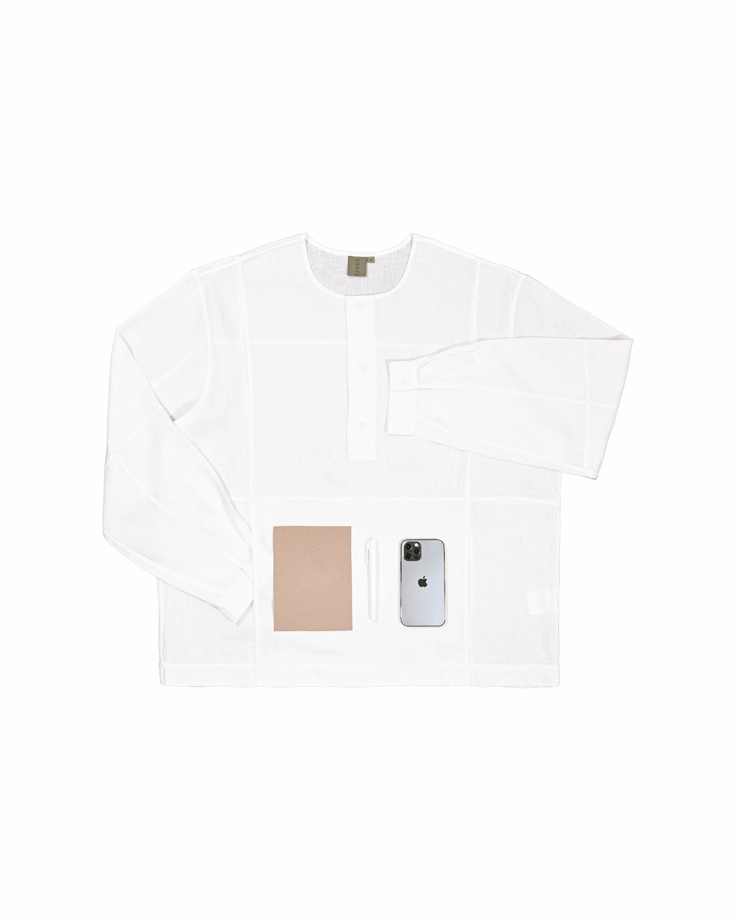 Featuring a collarless neckline and a half-length button closure for easy wearing. The wide full-length sleeves and the delicate cuff pleats add a touch of elegance and flair. The unique grid-like binding details showcase the exquisite craftsmanship and attention to detail of this shirt. Plus, a hidden kangaroo pocket at the front gives you some extra convenience.