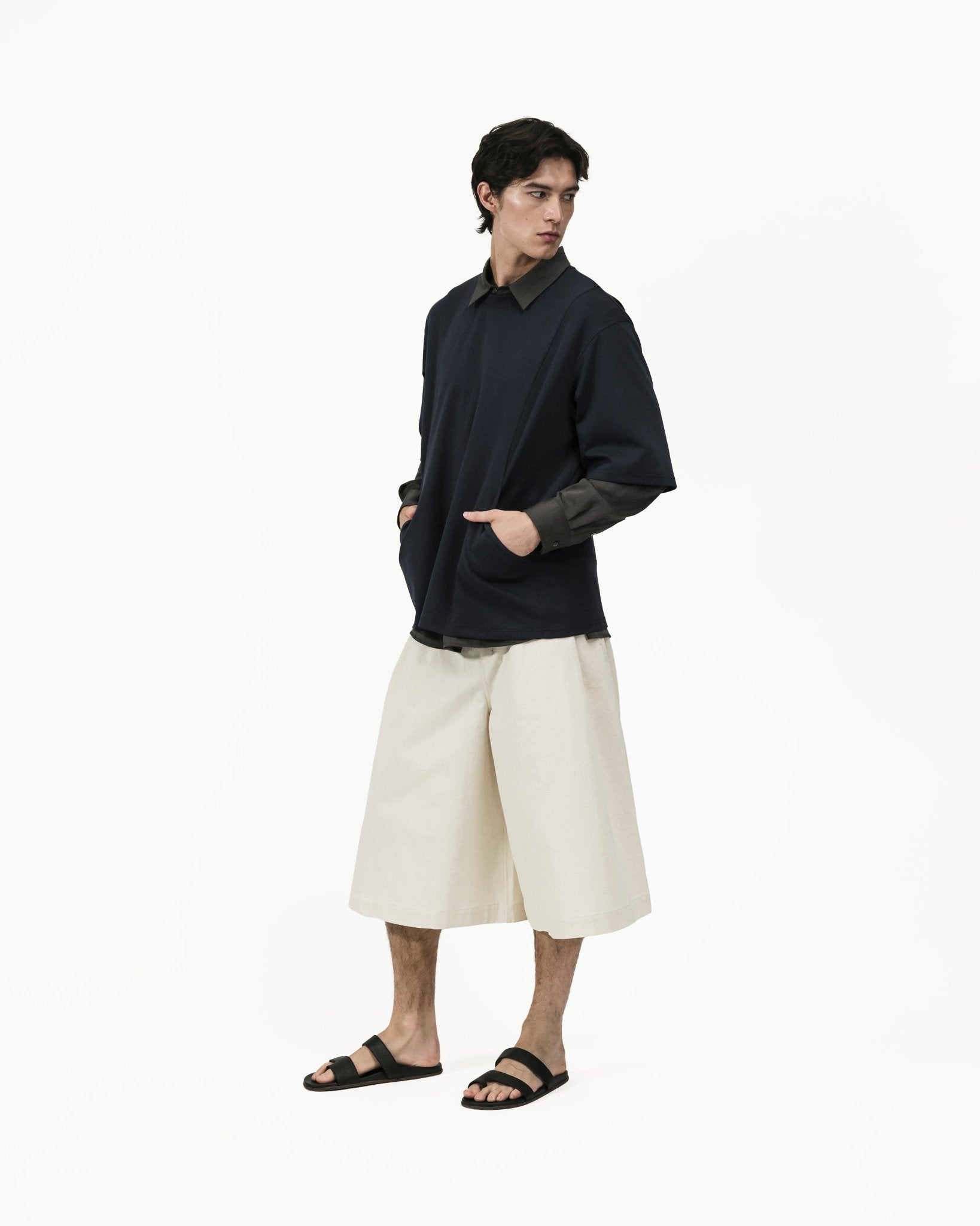 Where form follows function with bold precision. The double-faced cotton blend drapes with intention, while those architectural curved seams transform into functional pockets.