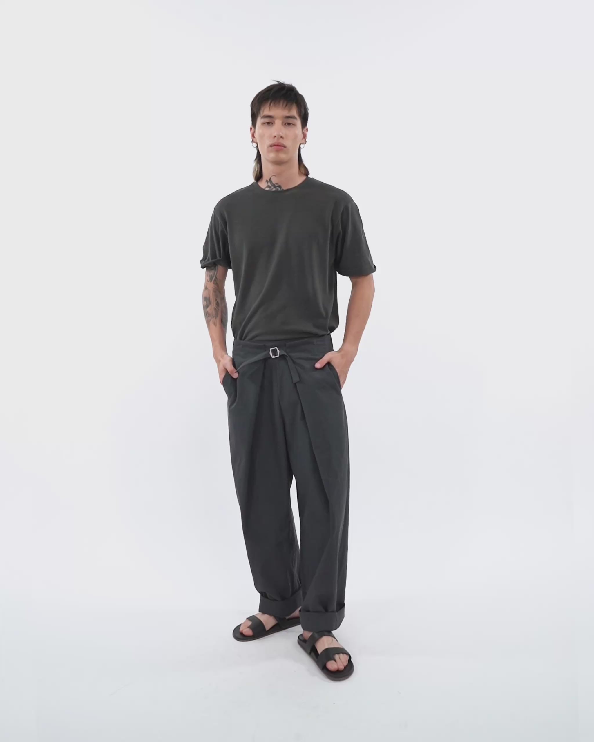 We kept this one in the line because it works on almost everyone. For 2.0, we refined the cut and deepened the pleats so the shape reads sharper without losing ease. The dual-strap waist gives you adjustment without relying on a belt, and the longer length lets you cuff it up and show the inner finish when you want a cleaner, cropped proportion.